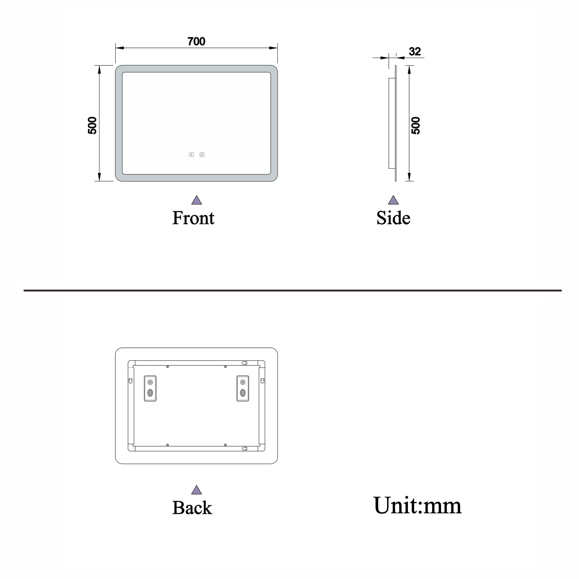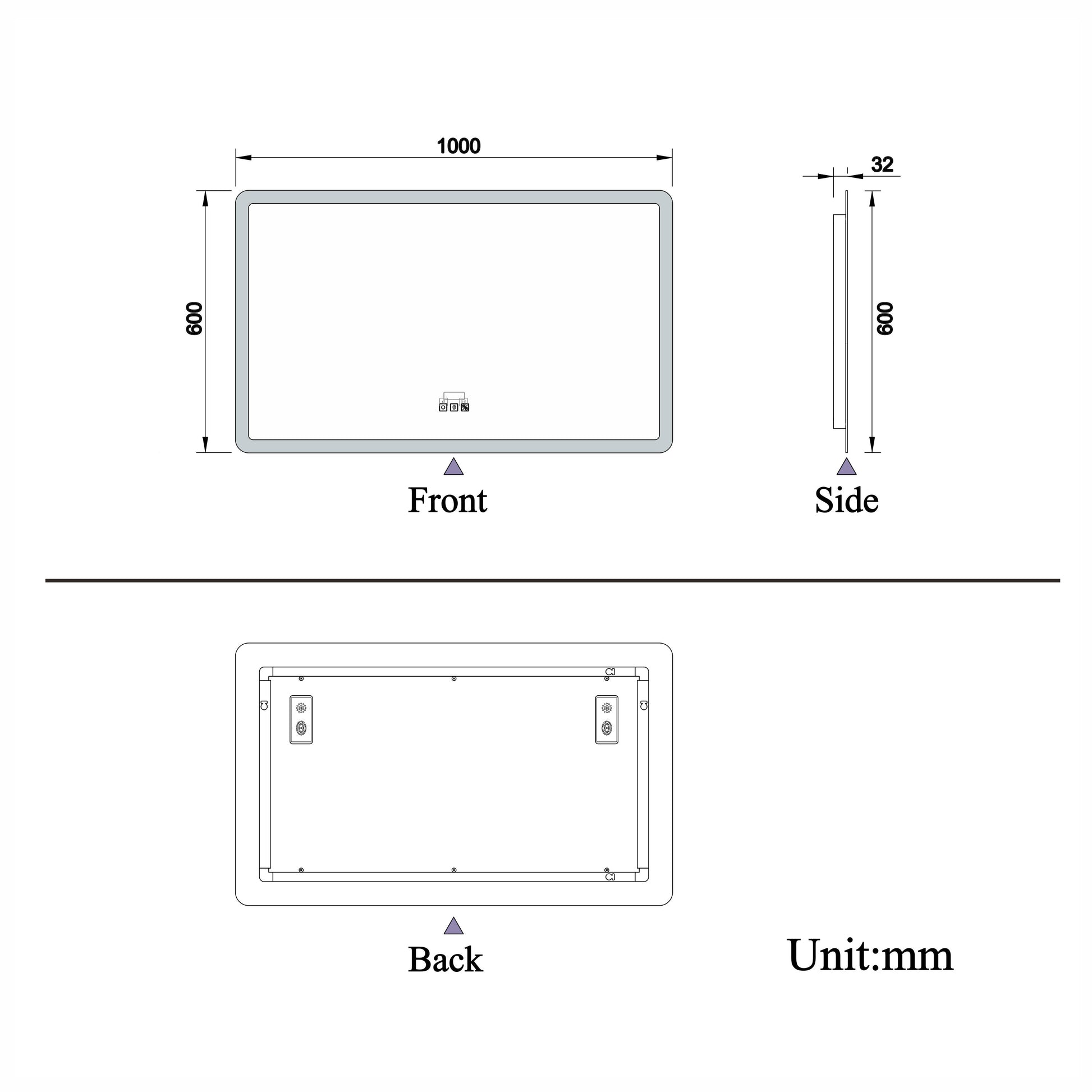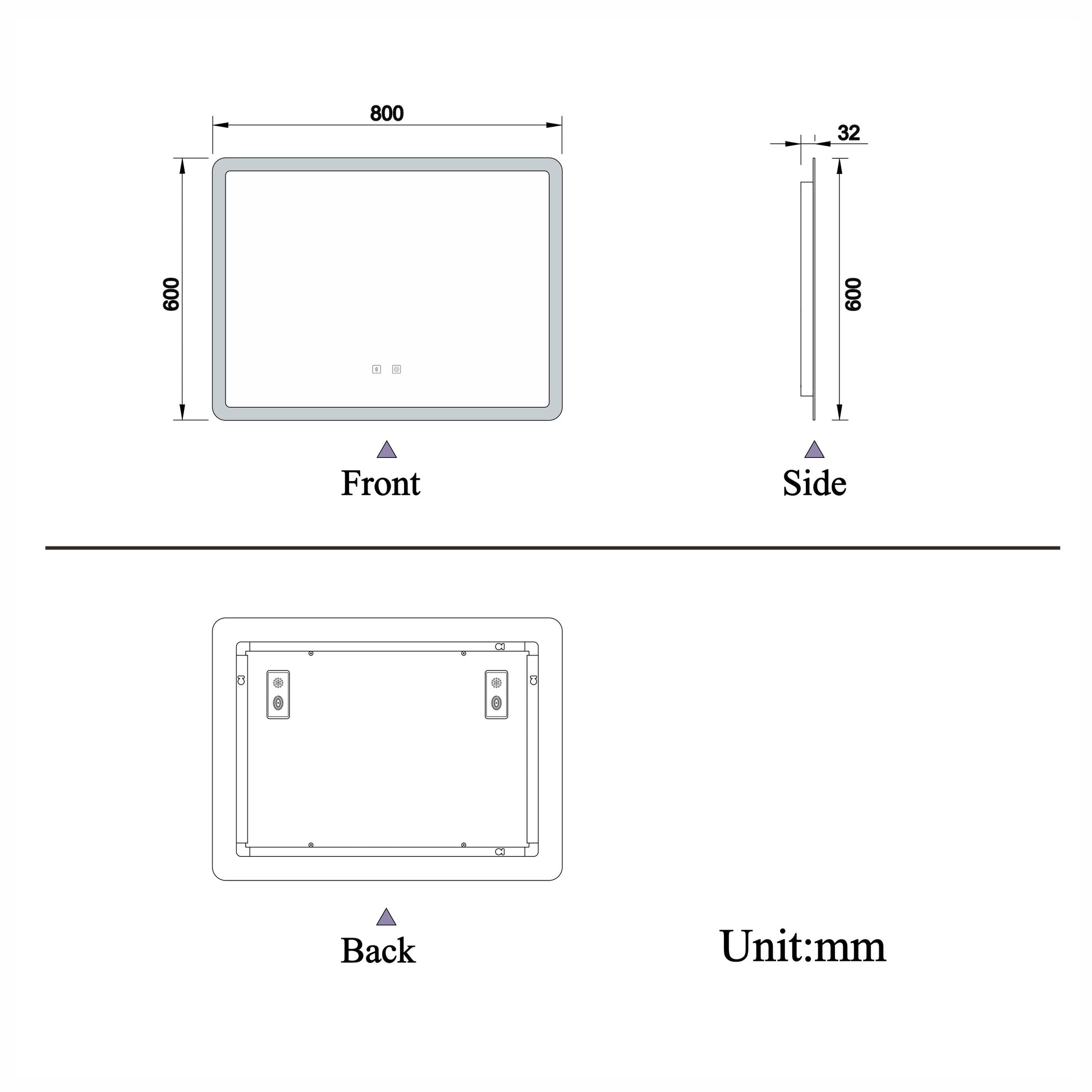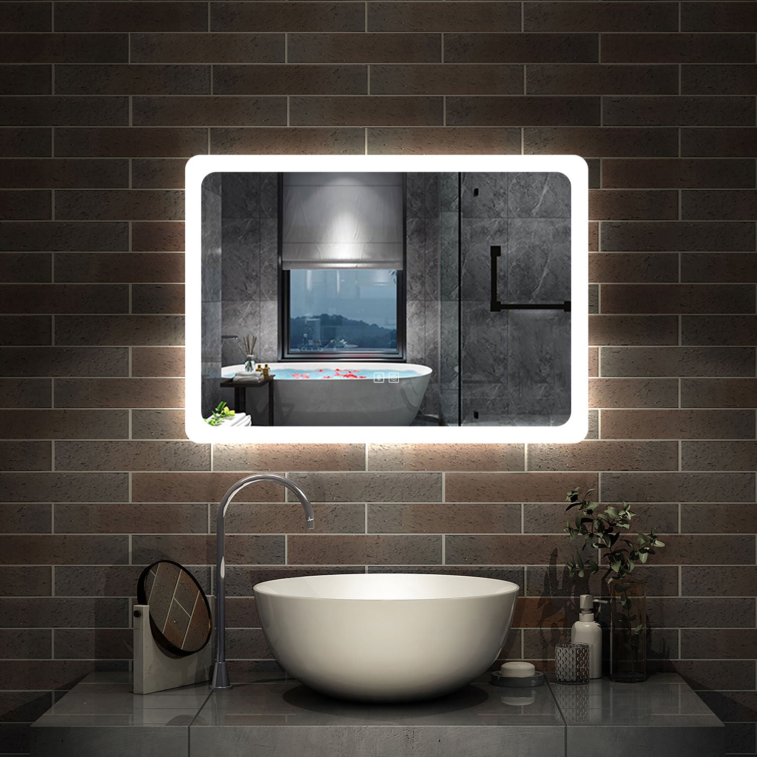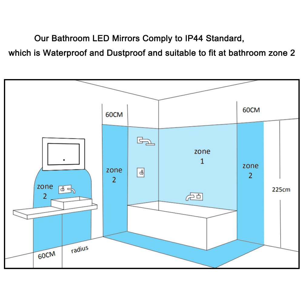- Aluminum back frame : This illuminated LED bathroom mirror features a modern frameless design, with an aluminum back frame.