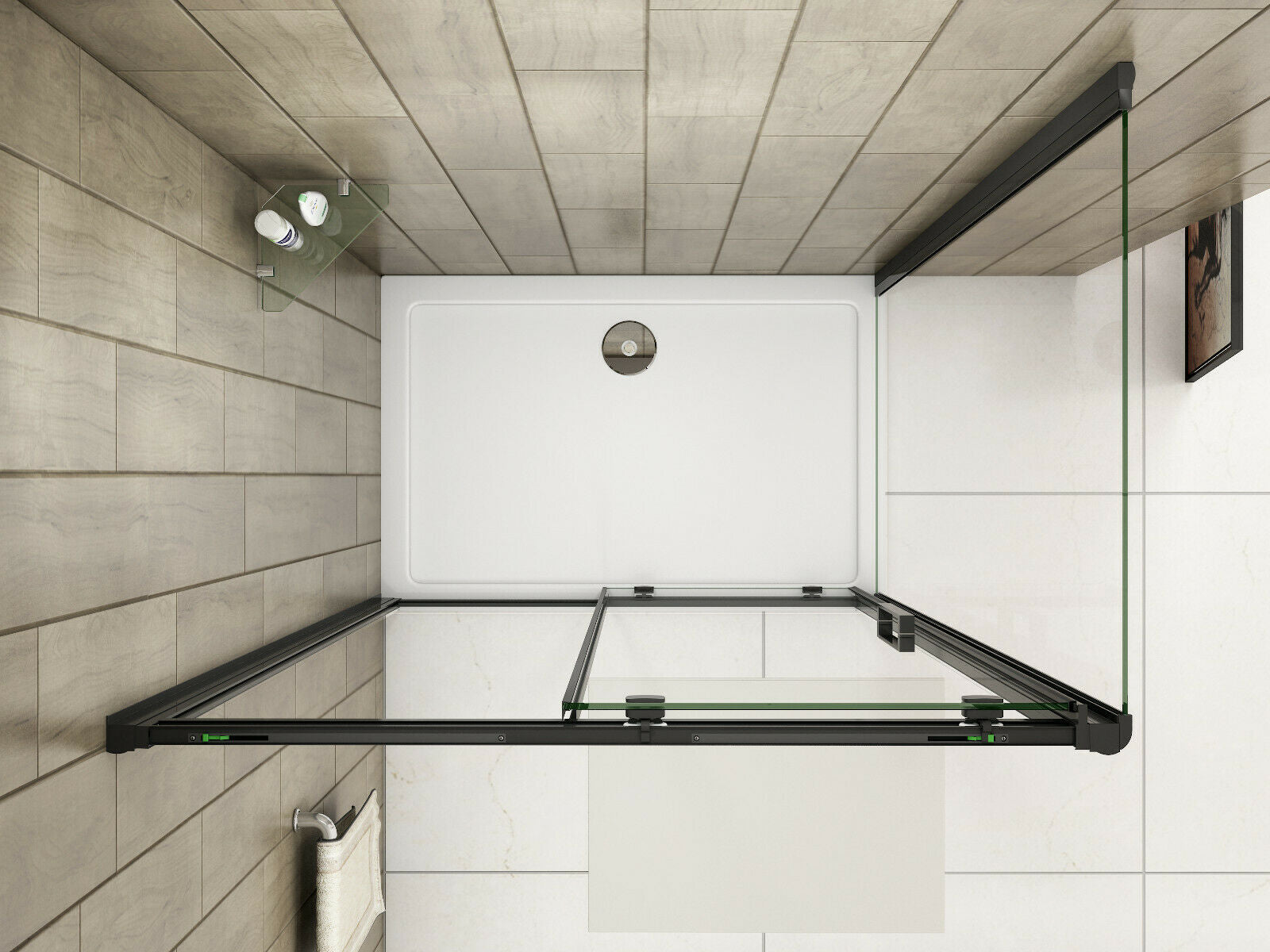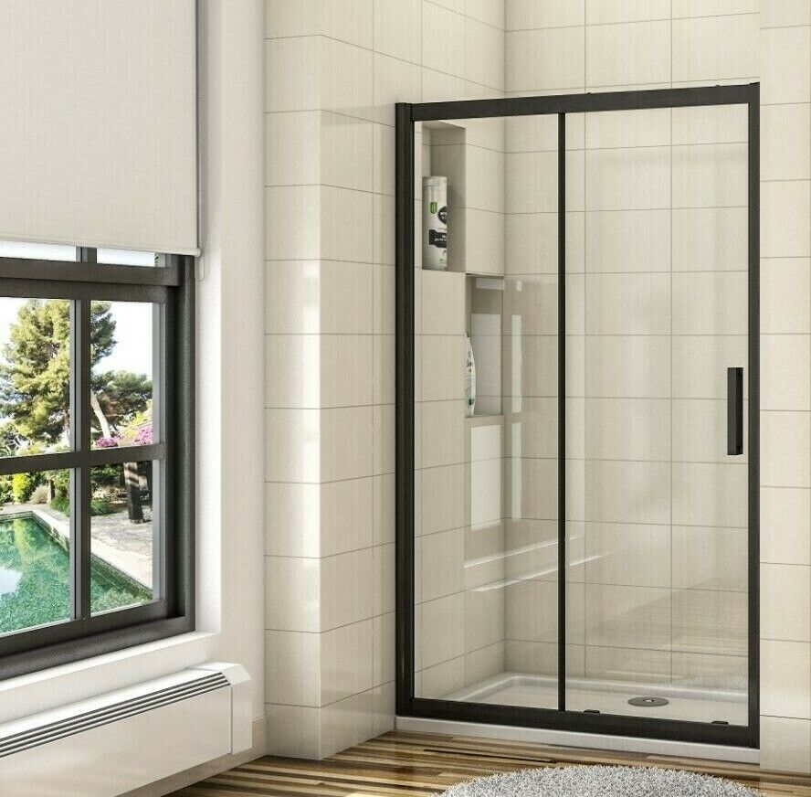 New Black Frame Bathroom Sliding Shower Enclosure Screen WalK In 8mm Glass Door