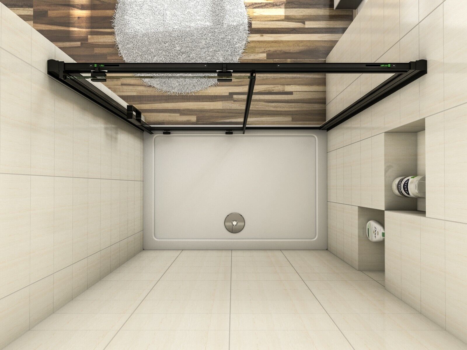 Black Frame Bathroom Sliding Shower Enclosure Screen WalK In 8mm Glass Door